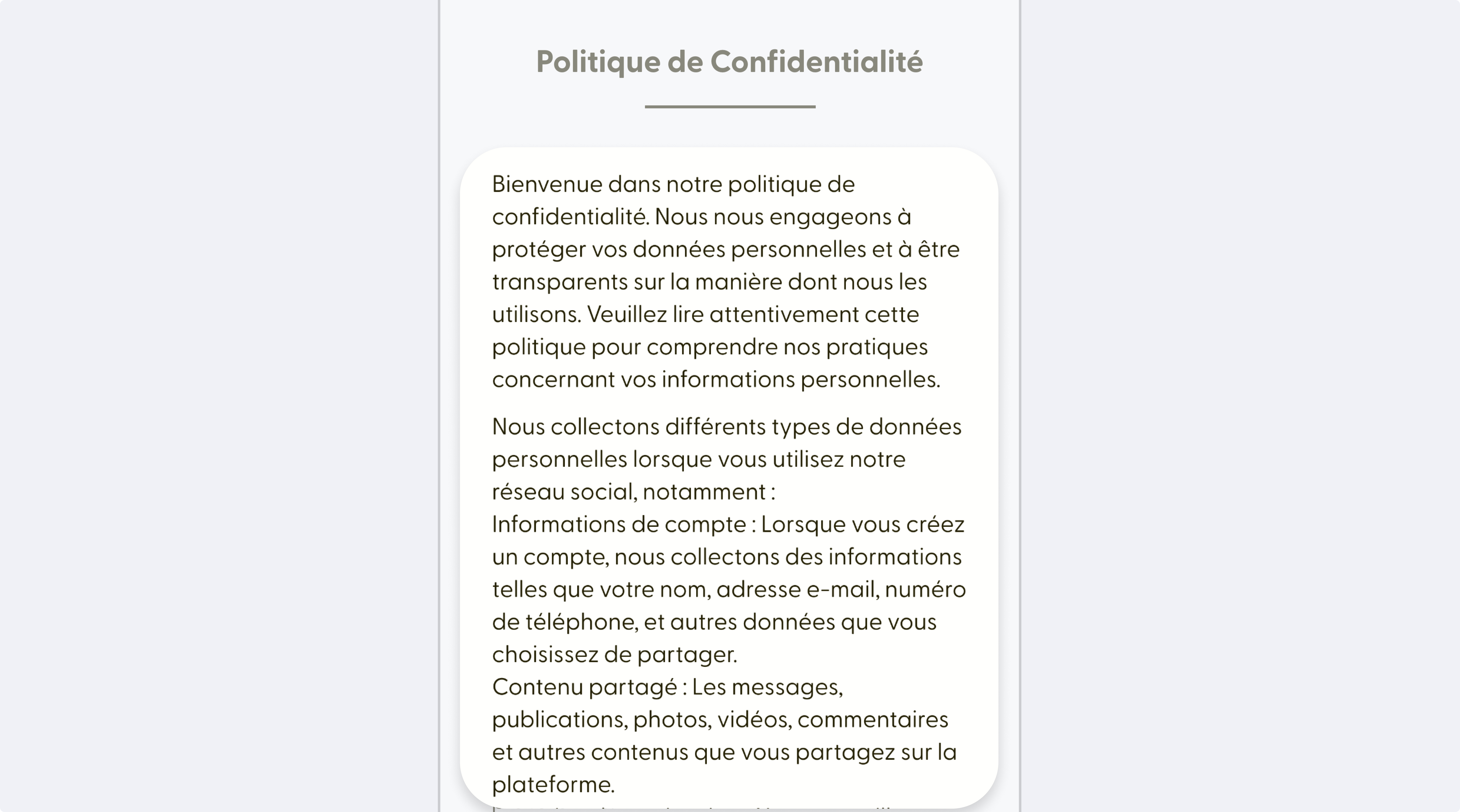 Vous consultez la politique de confidentialité d’un réseau social.
